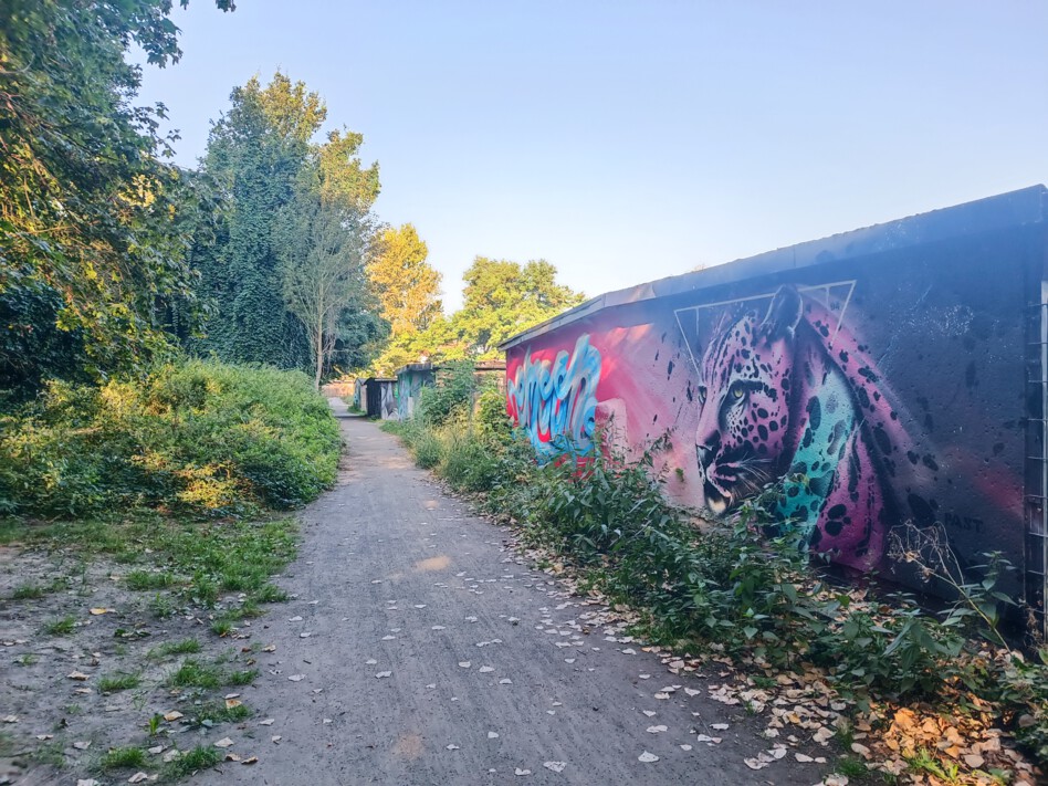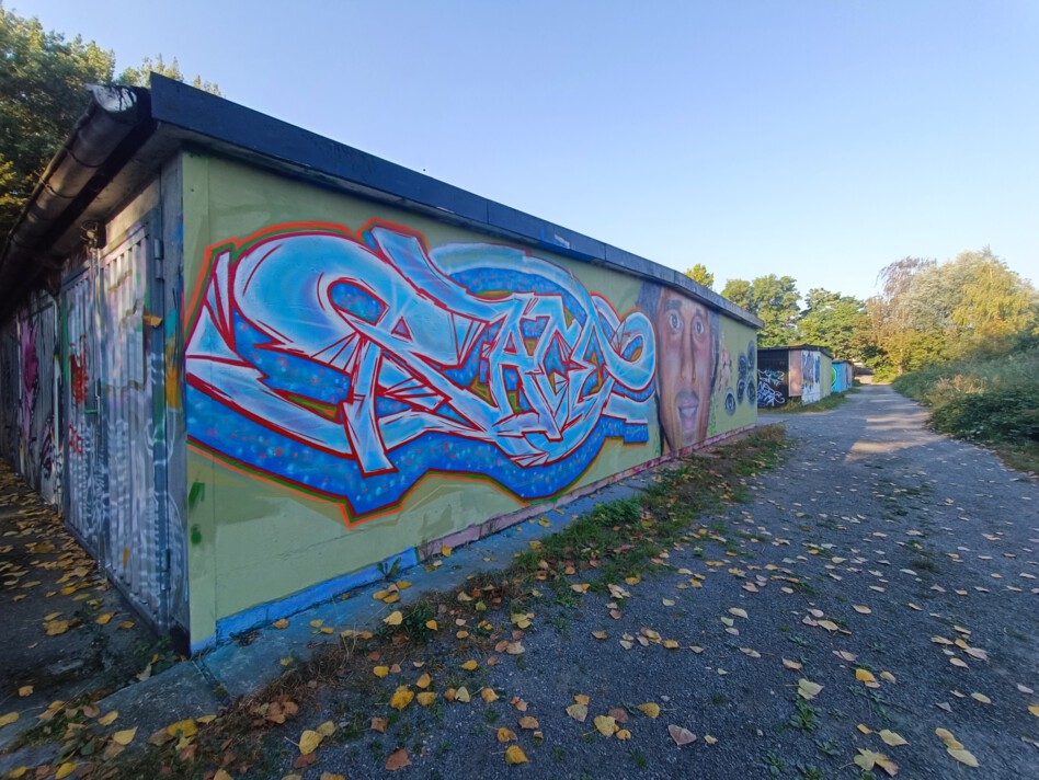 Die Projektwände befinden sich auf den Stirnseiten des Garagenhofs in der Beuthstraße 120 in Mockau - direkt am Abtnaundorfer Park. Zum Malen freigegeben sind ausschließlich die acht Stirnseiten der Garagenreihen (siehe Flächennutzungsplan).