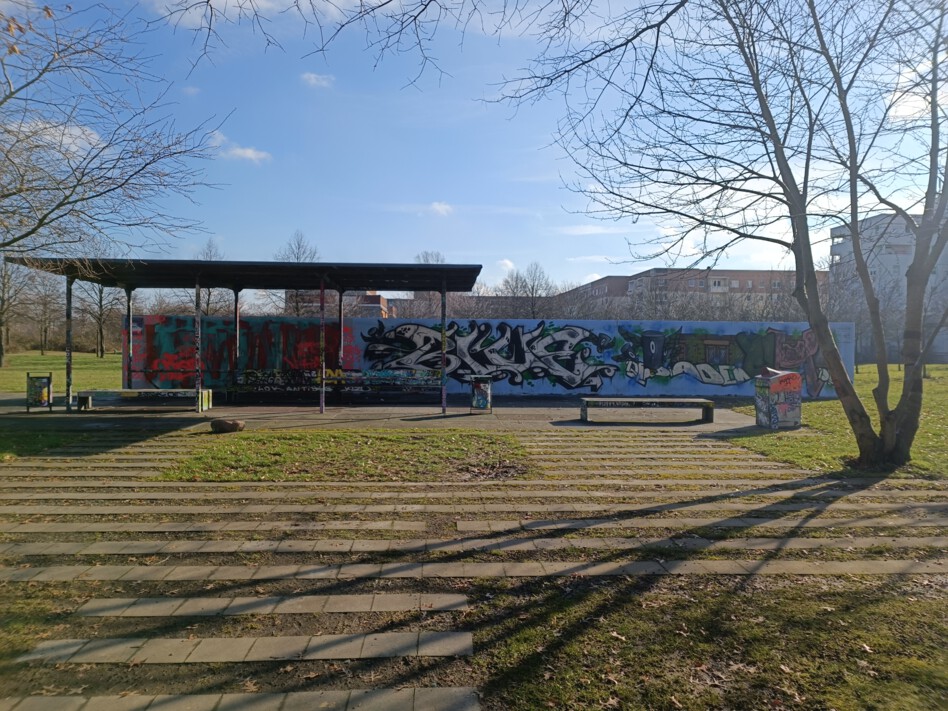 Die Wall of Fame befindet sich im Grünen Bogen in Paunsdorf nahe dem Landschaftssee.