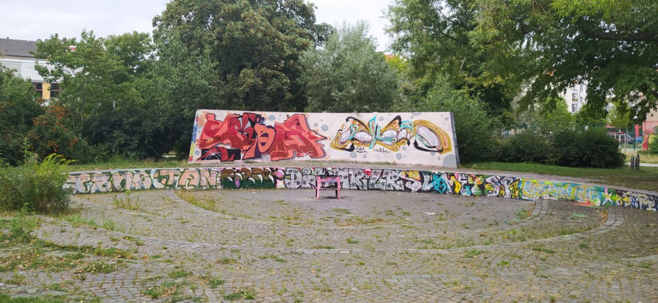 In unmittelbarer Nähe findest du auch mehrere kleine Projektwände (am OFT Rabet), eine große Projektwand (an der Nordseite der kleinen Turnhalle) sowie ein Fußballfeld, einen Basketballplatz, einen Skatepark, eine Tischtennisplatte, eine Calisthenics-Anlage und ein Beachvolleyballfeld.